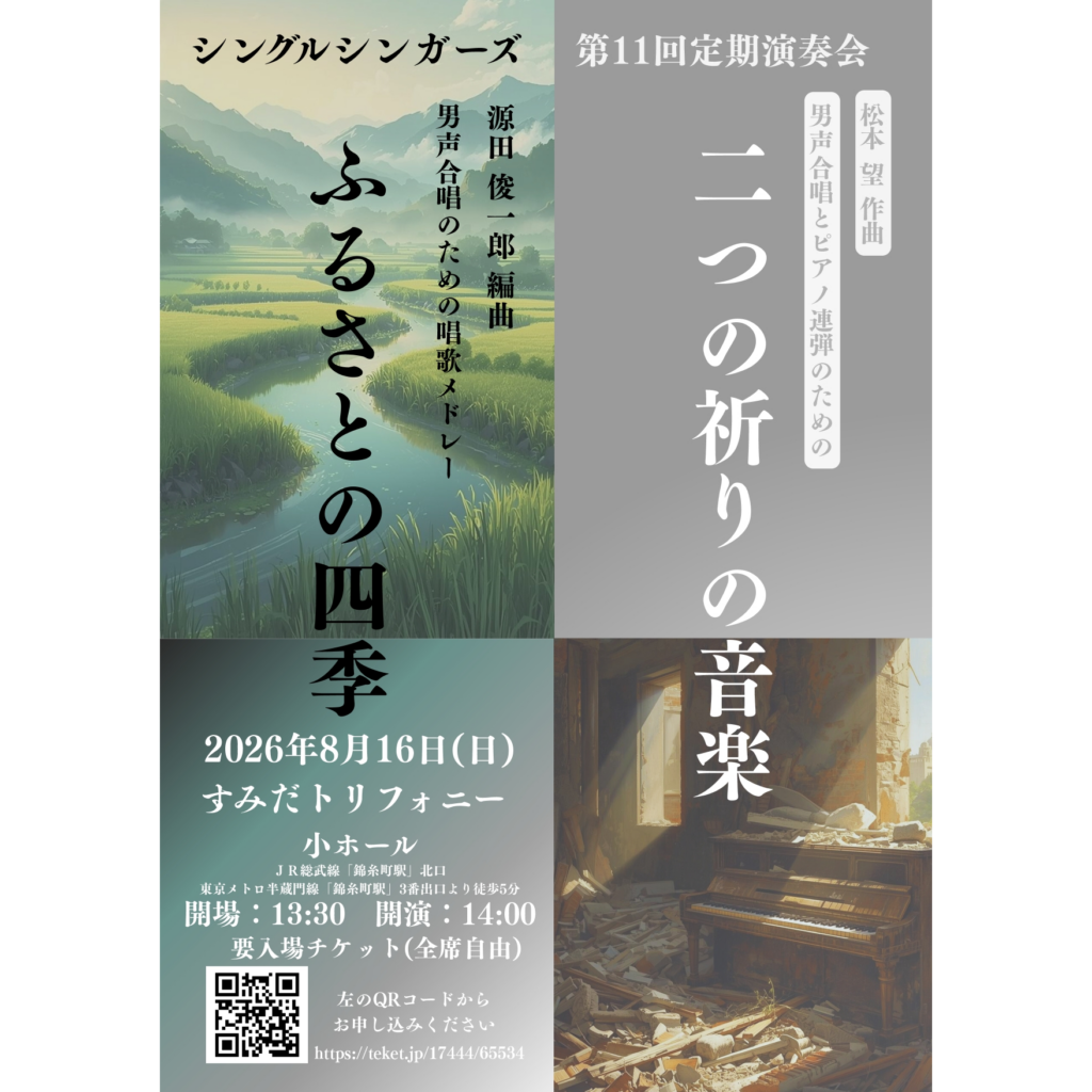 男声合唱団シングルシンガーズの定期演奏会です。第2および第3ステージの客演ピアニストとして加藤が出演します。